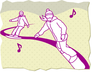 スノーボードを履くときは、一度座って、ビンディングにブーツをしっかりはめこんでから金具(ビンディング)を締めましょう!ビンディングをきちんと締めないと、滑っているときに板の操作がうまくできず、危険!